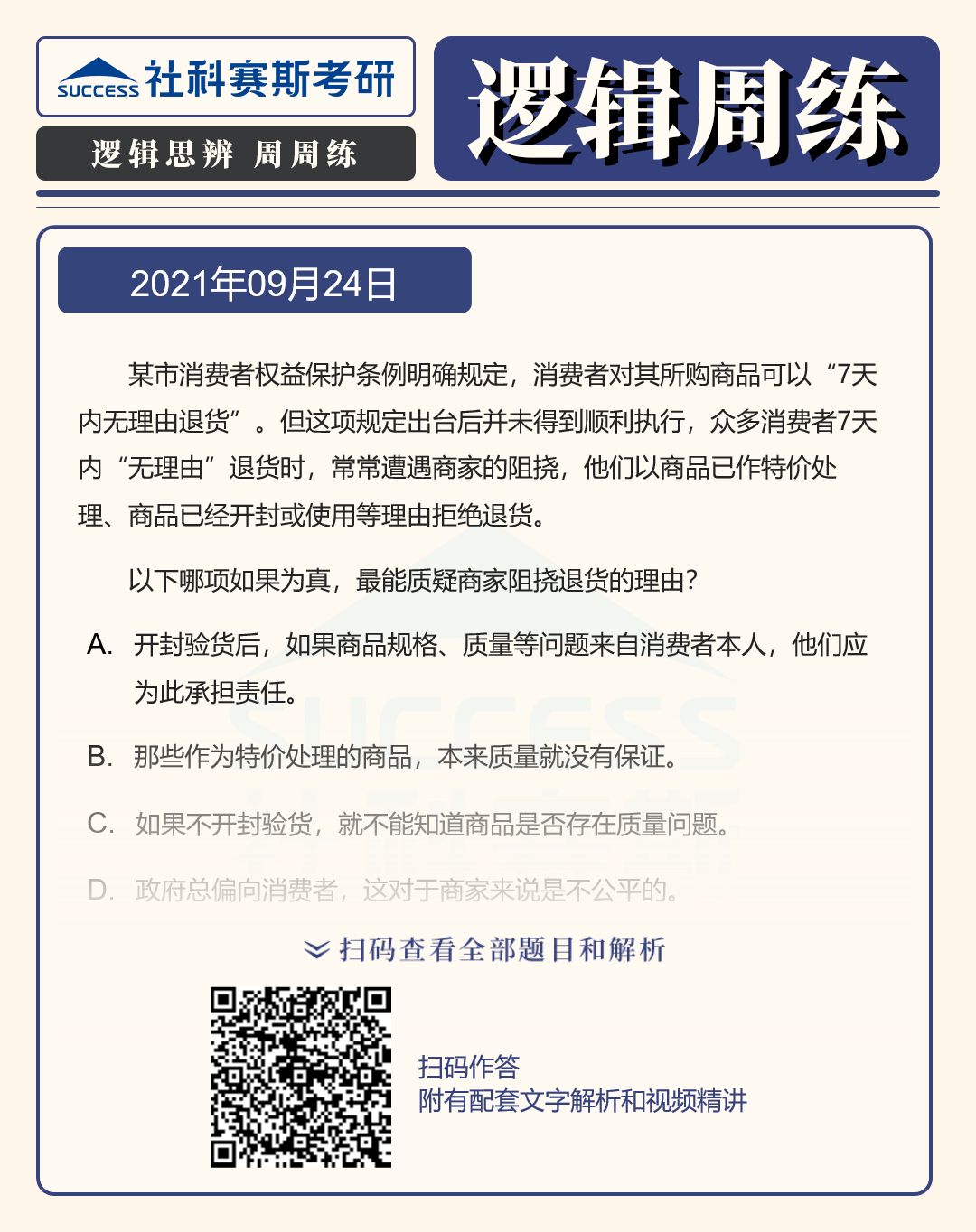 以上就是“2022MBA邏輯:2022MBA聯(lián)考邏輯習(xí)題及答案解析(9月24日)”的全部內(nèi)容,更多邏輯精選習(xí)題,請持續(xù)關(guān)注社科賽斯MBA備考網(wǎng)!