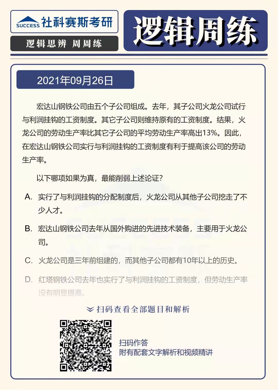 導(dǎo)讀:邏輯題型是管理類聯(lián)考考試中的必考題型,也是MBA聯(lián)考復(fù)習(xí)中的重要部分,社科賽斯MBA備考網(wǎng)小編整理了“2022MBA邏輯:2022MBA聯(lián)考邏輯習(xí)題及答案解析(9月26日)”的內(nèi)容,希望能對廣大考生有所幫助。