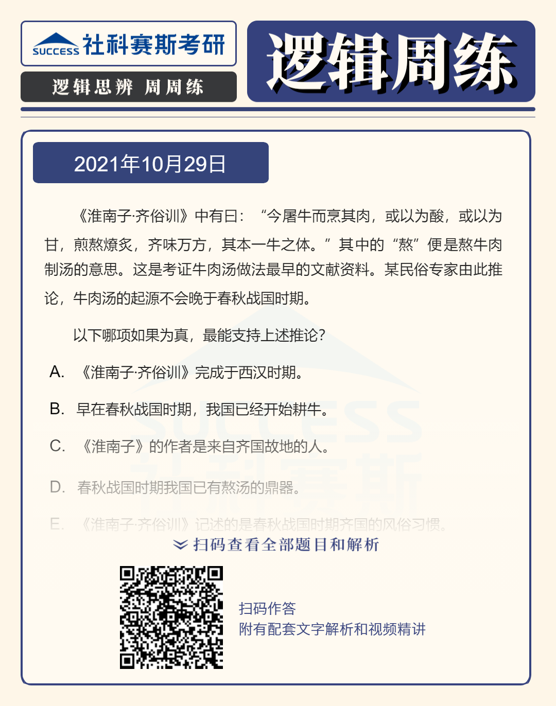 以上就是“2022MBA邏輯:2022MBA聯(lián)考邏輯習(xí)題及答案解析(10月29日)”的全部?jī)?nèi)容,更多邏輯精選習(xí)題,請(qǐng)持續(xù)關(guān)注社科賽斯MBA備考網(wǎng)!