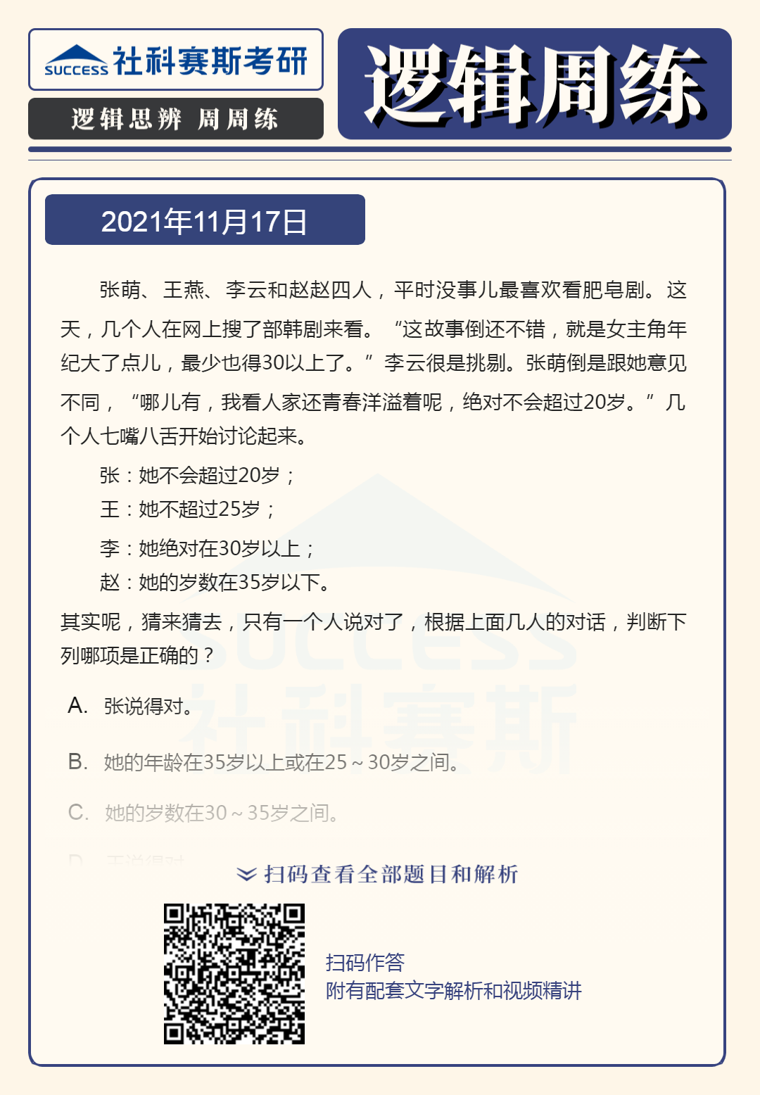 以上就是“2022MBA邏輯:2022MBA聯(lián)考邏輯習(xí)題及答案解析(11月17日)”的全部?jī)?nèi)容,更多邏輯精選習(xí)題,請(qǐng)持續(xù)關(guān)注社科賽斯MBA備考網(wǎng)!
