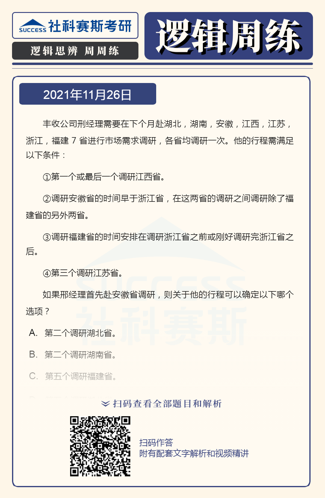 以上就是“2022MBA邏輯:2022MBA聯(lián)考邏輯習(xí)題及答案解析(11月26日)”的全部?jī)?nèi)容,更多邏輯精選習(xí)題,請(qǐng)持續(xù)關(guān)注社科賽斯MBA備考網(wǎng)!
