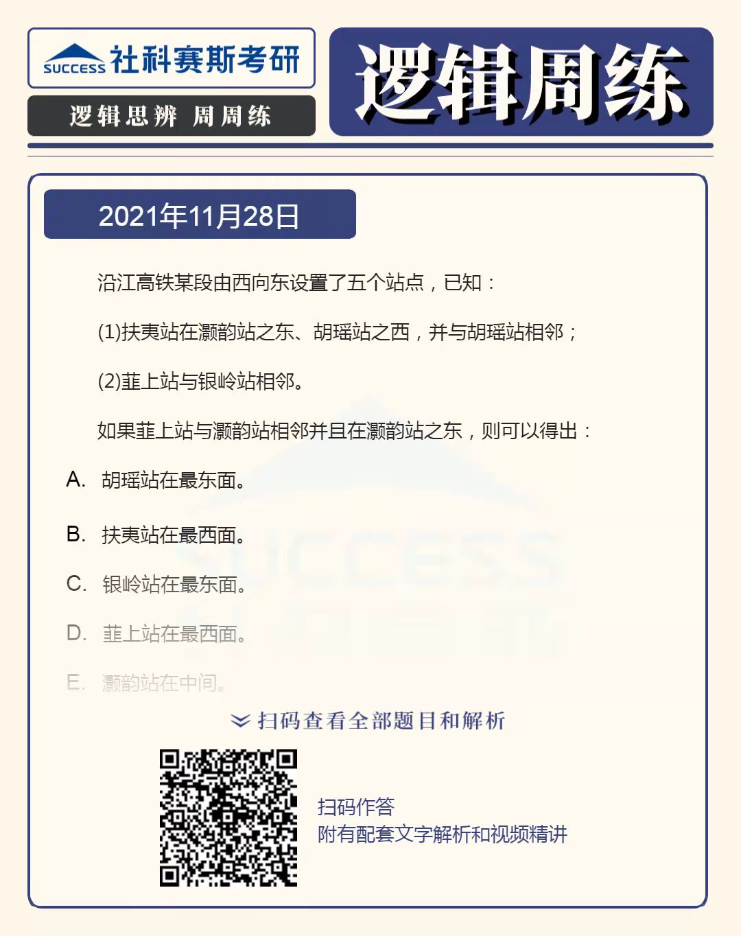 以上就是“2022MBA邏輯:2022MBA聯(lián)考邏輯習(xí)題及答案解析(11月28日)”的全部內(nèi)容,更多邏輯精選習(xí)題,請(qǐng)持續(xù)關(guān)注社科賽斯MBA備考網(wǎng)!