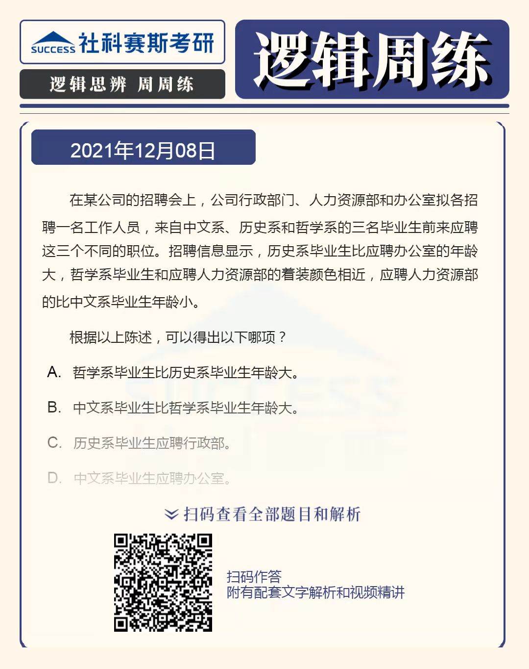 以上就是“2022MBA邏輯:2022MBA聯(lián)考邏輯習(xí)題及答案解析(12月8日)”的全部?jī)?nèi)容,更多邏輯精選習(xí)題,請(qǐng)持續(xù)關(guān)注社科賽斯MBA備考網(wǎng)!