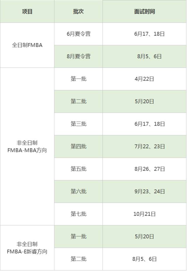1.北大光華MBA項(xiàng)目“X計(jì)劃” 2.清華-康奈爾雙學(xué)位金融MBA 3.復(fù)旦大學(xué) 4.同濟(jì)大學(xué) 5.華東師范大學(xué) 6.上海外國(guó)語(yǔ)大學(xué) 7.上海交通大學(xué)高級(jí)金融學(xué)院 8.上海交大安泰經(jīng)管學(xué)院 9.電子科技大學(xué) 10.廣東外語(yǔ)外貿(mào)大學(xué) 北大光華MBA項(xiàng)目“X計(jì)劃” 1.項(xiàng)目簡(jiǎn)介 北京大學(xué)光華管理學(xué)院MBA項(xiàng)目“X計(jì)劃”針對(duì)即將畢業(yè)的本科生與研究生,考察申請(qǐng)人的綜合素質(zhì),選拔具有培養(yǎng)潛質(zhì)的優(yōu)秀年輕人進(jìn)入光華MBA項(xiàng)目 2.申請(qǐng)資格 ①大三、大四、研究生(全日制)在校學(xué)生; ② 成績(jī)優(yōu)秀; ③ 擁有實(shí)習(xí)或創(chuàng)業(yè)經(jīng)歷的申請(qǐng)人優(yōu)先 3.時(shí)間安排 4.報(bào)考流程 ①在線填寫(xiě)并提交申請(qǐng)資料; ② 材料接受審核,確定面試資格; ③參加面試,確定MBA保送資格; ④在工作年限達(dá)到教育部規(guī)定的MBA報(bào)考最低年限的基礎(chǔ)上,參加筆試并達(dá)到當(dāng)年入學(xué)要求; ⑤通過(guò)政審,錄取為北京大學(xué)光華管理學(xué)院MBA項(xiàng)目全日制班(中文授課)或全日制班(英文授課)的學(xué)生 2 清華-康奈爾雙學(xué)位金融MBA 1.項(xiàng)目簡(jiǎn)介 本項(xiàng)目為清華大學(xué)五道口金融學(xué)院與康奈爾大學(xué)約翰遜管理學(xué)院合作創(chuàng)辦的雙學(xué)位金融MBA項(xiàng)目,中英雙語(yǔ)授課,學(xué)制為在職兩學(xué)年 2.申請(qǐng)資格 ① 獲得國(guó)家承認(rèn)的本科畢業(yè)學(xué)歷后,到2018年7月有三年或三年以上全職工作經(jīng)歷者 3.時(shí)間安排 4.報(bào)考流程 ①填寫(xiě)清華五道口申請(qǐng)表 ②材料審核 ③按面試通知的要求參加提前面試 ④關(guān)于提交托?;蜓潘汲煽?jī) ⑤參加全國(guó)MBA統(tǒng)一考試 3 復(fù)旦大學(xué) 1.項(xiàng)目簡(jiǎn)介 2.時(shí)間安排 3.申請(qǐng)流程 在職MBA項(xiàng)目預(yù)審流程圖 國(guó)際MBA項(xiàng)目預(yù)審流程圖 4 同濟(jì)大學(xué) 1.項(xiàng)目詳情 2.時(shí)間安排 5 華東師范大學(xué) 1.項(xiàng)目詳情 2.時(shí)間安排 6 上海外國(guó)語(yǔ)大學(xué) 1.項(xiàng)目詳情 2.時(shí)間安排 上外MBA2018級(jí)招生將采用全年復(fù)試政策,考生可以選擇在聯(lián)考前或者聯(lián)考后參加,測(cè)試結(jié)果2年有效。復(fù)試將分為多個(gè)批次,考生可根據(jù)自己的時(shí)間安排進(jìn)行申請(qǐng)。(以下為暫定具體時(shí)間節(jié)點(diǎn)) 7 上海交通大學(xué)高級(jí)金融學(xué)院 1.項(xiàng)目簡(jiǎn)介 上海交通大學(xué)上海高級(jí)金融學(xué)院FMBA項(xiàng)目是中國(guó)首個(gè)金融專(zhuān)業(yè)方向的工商管理碩士學(xué)位項(xiàng)目。 2.時(shí)間安排 3.申請(qǐng)流程 8 上海交大安泰經(jīng)管學(xué)院 1.項(xiàng)目簡(jiǎn)介 交大安泰在2008年和2011年分別獲得了AMBA、EQUIS和AACSB三項(xiàng)國(guó)際頂級(jí)權(quán)威管理教育體系認(rèn)證,是中國(guó)內(nèi)地首家同時(shí)獲得三項(xiàng)國(guó)際權(quán)威認(rèn)證的商學(xué)院。 2.時(shí)間安排 3.申請(qǐng)流程 9 電子科技大學(xué) 1.項(xiàng)目簡(jiǎn)介 電子科技大學(xué)MBA項(xiàng)目分為: 1、創(chuàng)新與變革領(lǐng)導(dǎo)力MBA 2、電子商務(wù)運(yùn)營(yíng)領(lǐng)袖MBA(在職學(xué)習(xí)) 3、普通MBA 2.時(shí)間安排 3.申請(qǐng)流程 10 廣東外語(yǔ)外貿(mào)大學(xué) 1.項(xiàng)目詳情 廣東外語(yǔ)外貿(mào)大學(xué)商學(xué)院MBA教育中心依托學(xué)校“專(zhuān)業(yè)+外語(yǔ)”的人才培養(yǎng)模式和外語(yǔ)教學(xué)的獨(dú)特優(yōu)勢(shì),堅(jiān)持“本土國(guó)際化”的項(xiàng)目定位,致力于培養(yǎng)融貫中西的國(guó)際化管理人才。 1、全日制MBA:全英授課,脫產(chǎn)學(xué)習(xí)2年 2、非全日制MBA:含全英班和雙語(yǔ)班,利用業(yè)余時(shí)間學(xué)習(xí)3年 3、國(guó)際交流:安排兩周至一年的海外考察、學(xué)習(xí)或?qū)嵙?xí),費(fèi)用視交流項(xiàng)目具體情況而定,特增設(shè)國(guó)際交流資助 2.時(shí)間安排 提前面試:在線申請(qǐng),分批面試,面試資格2年有效。考生如果獲得提前面試“直通車(chē)”資格,通過(guò)聯(lián)考后便直接進(jìn)入錄取階段,無(wú)需參加復(fù)試。