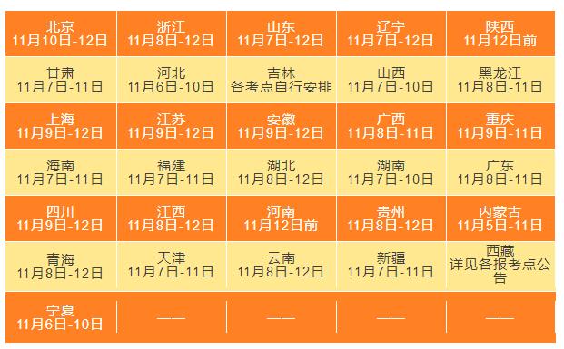 最后附上各省市現(xiàn)場確認時間匯總表,供大家參考~一定要去查看報考點的網(wǎng)報公告!