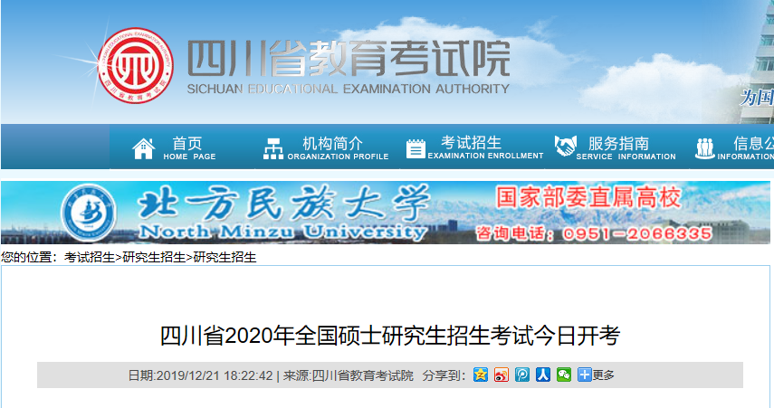 四川省教育考試院公布的“四川省2020年全國(guó)碩士研究生招生考試今日開(kāi)考”可得知,2020年2月11日有招生單位通知考試成績(jī)。