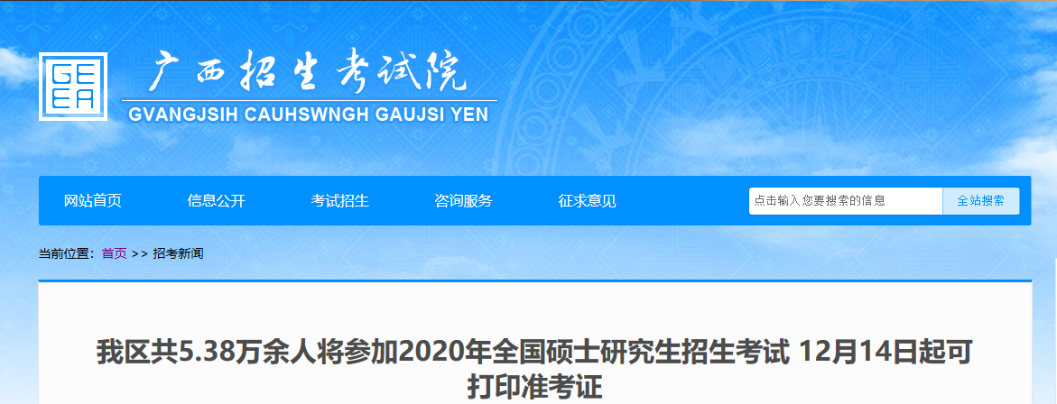 廣西省招生考試院公布的“我區(qū)共5.38萬余人將參加2020年全國碩士研究生招生考試 12月14日起可打印準考證”可得知,2020年2月10日起,考生可通過招生單位公布的方式查詢考試成績。