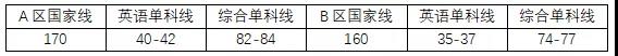 即A區(qū)國家線有較大概率還是停留在170,而在單科方面,英語單科線在40-42分,綜合單科線在82-84分波動的概率最大。B區(qū)國家線在160,英語單科線在35-37,綜合在74-77。