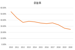 同時我們也可以明顯看出,雖然MBA報考人數(shù)逐年大幅增長,但MBA考生錄取比例整體卻呈下降趨勢,國家線也因而在近幾年有一個調(diào)高的趨勢,在2018年及2019年均維持在170分,分拆即綜合單科大致需在120分以上,英語單科需在50分以上。因此,單從報考人數(shù)來看,在2020年各商學院招生名額沒有一個明顯的增額的情況,國家線仍會設定在170分及以上。