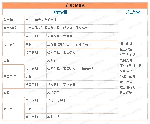 全日制MBA項(xiàng)目在校兩年期間課程安排