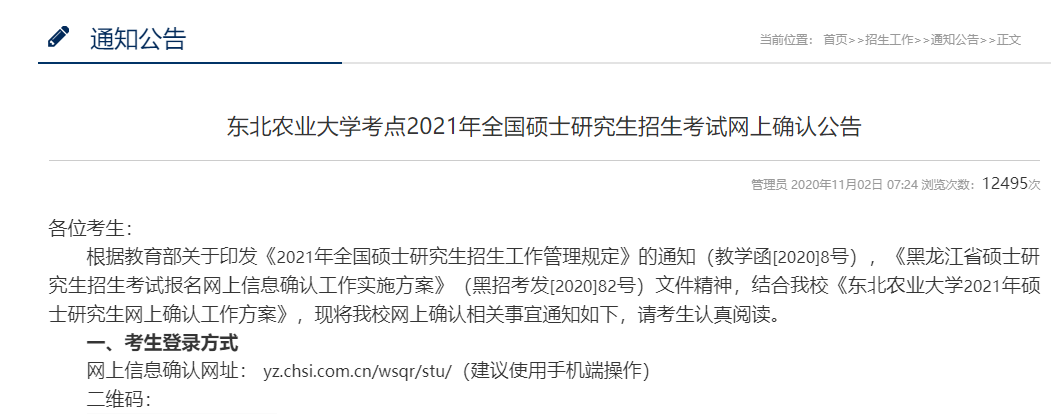 原文標(biāo)題:2021年研招考試東北農(nóng)業(yè)大學(xué)報(bào)考點(diǎn)網(wǎng)上信息確認(rèn)公告