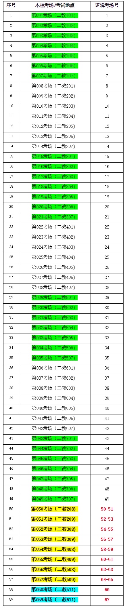 2021年全國碩士研究生招生考試我??键c的考場均安排在第二教學(xué)樓(二教),具體分布如下: