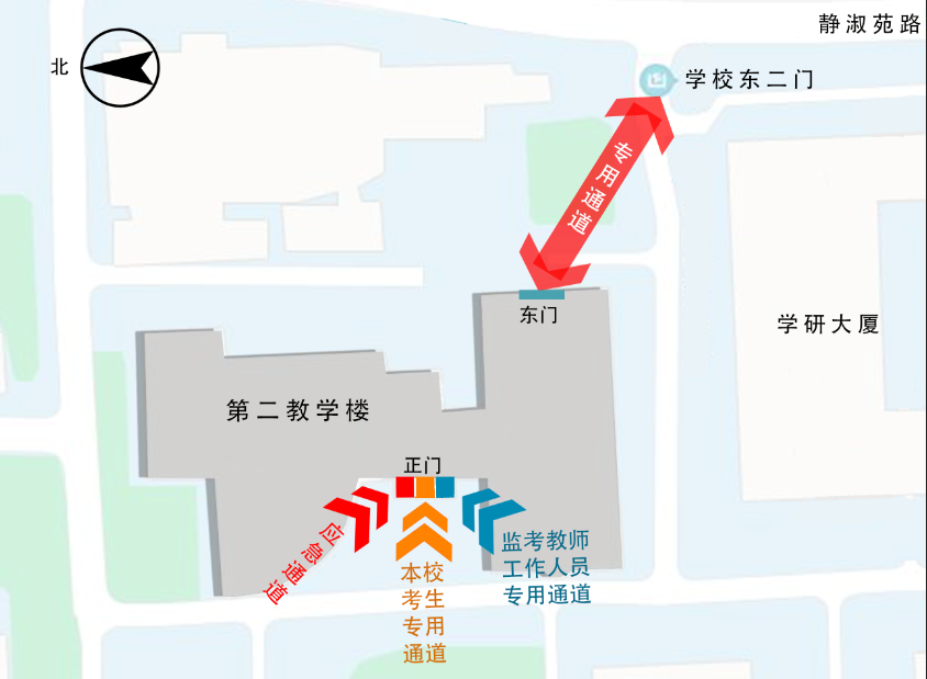 四、進(jìn)場地點:校外考生一律從東2門出入,校內(nèi)考生從第二教學(xué)樓正門進(jìn)入考場,每場考試結(jié)束后所有考生一律從東2門有序離開。為避免擁堵,保證安全,請考生務(wù)必按指定路線和引導(dǎo)人員的要求進(jìn)出考區(qū),不得擁擠,自覺保持人與人之間間隔大于1米。