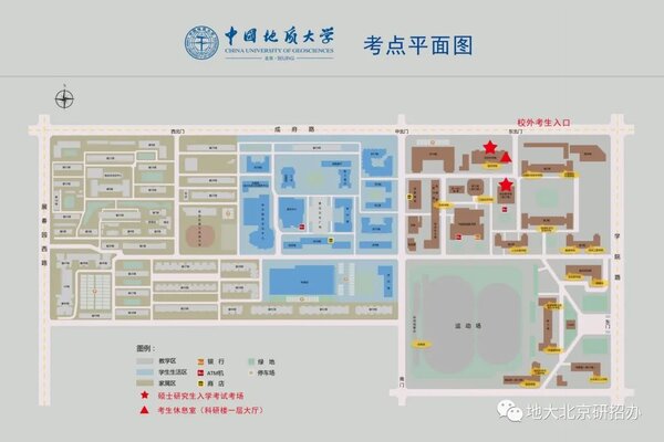 1、校外考生應(yīng)于考試當(dāng)日從我校東北門(mén)進(jìn)入(早7:00、下午12:30可以進(jìn)入),考生考試考場(chǎng)分布在綜合教學(xué)樓和科研樓,請(qǐng)同學(xué)們及時(shí)查看個(gè)人考場(chǎng)安排(考生考場(chǎng)安排將于考前一天在本公眾號(hào)和中國(guó)地質(zhì)大學(xué)(北京)研究生院官網(wǎng)公布),有序進(jìn)入相應(yīng)考場(chǎng)。