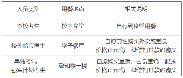 六、關(guān)于考生用餐