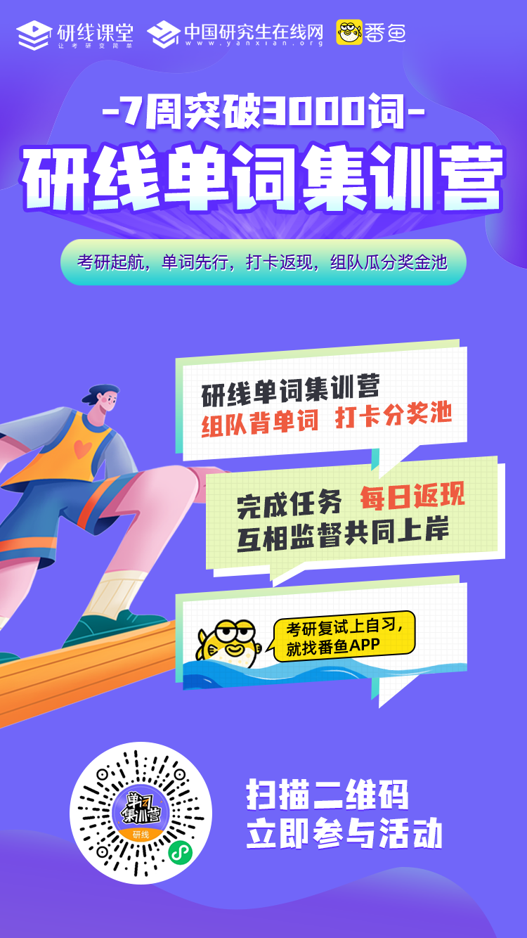 ▲研線網(wǎng)公眾號(hào)后臺(tái)回復(fù)【背單詞】添加研線小姐姐好友,即可進(jìn)入研線單詞集訓(xùn)營(yíng)!