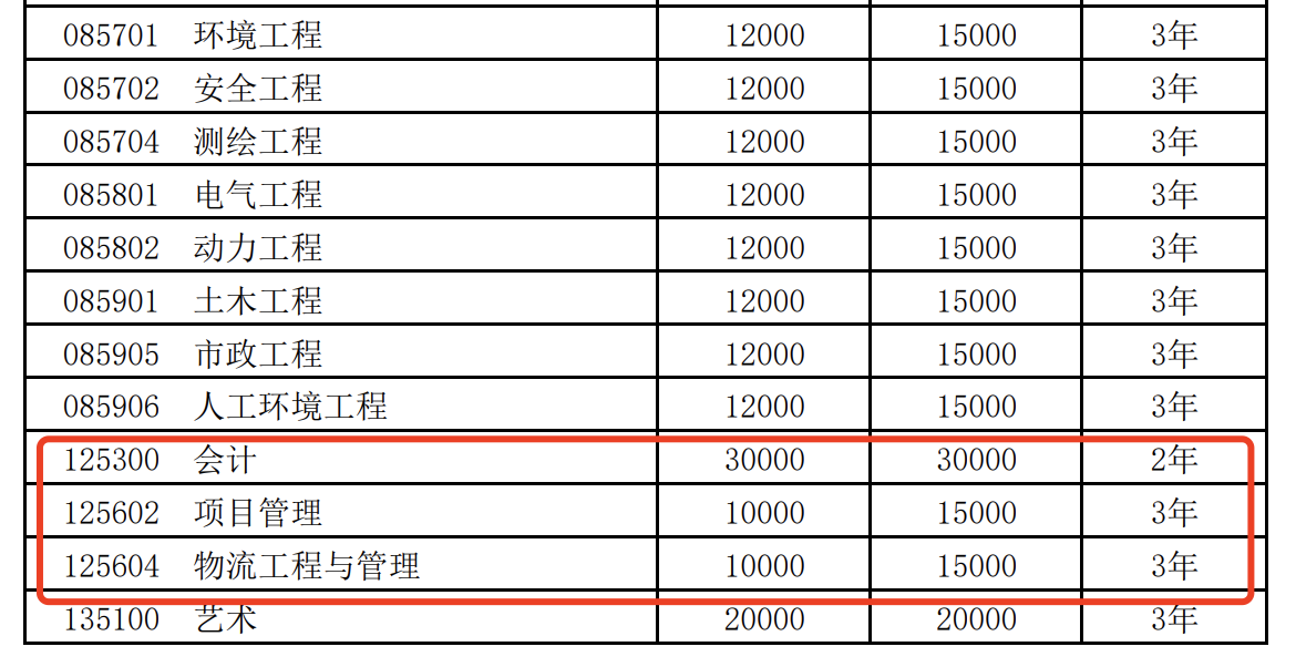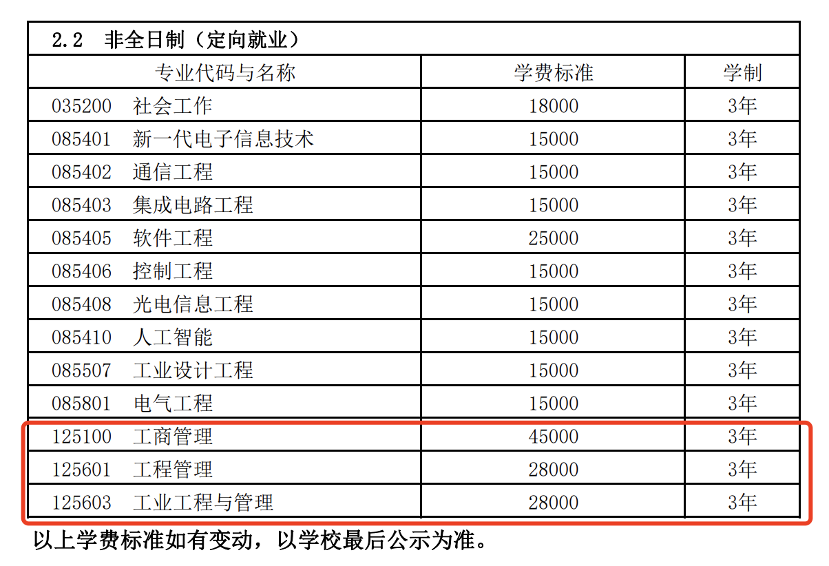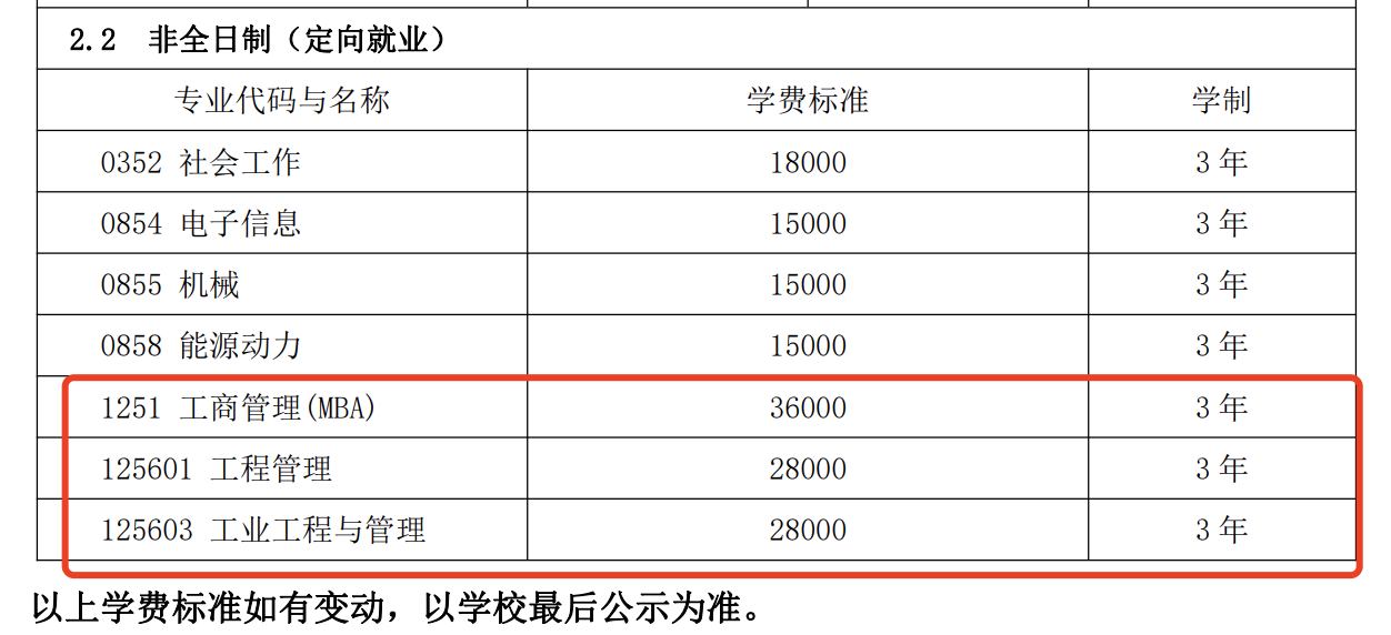 全日制MEM(項目管理)學(xué)制3年,非定向就業(yè)學(xué)費3萬,定向就業(yè)學(xué)費4.5萬;