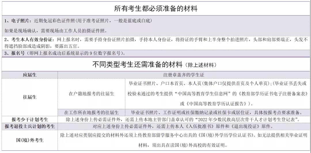 不同報(bào)考點(diǎn)所需資料略有不同,各位要及時(shí)關(guān)注報(bào)考點(diǎn)的網(wǎng)報(bào)公告,小編給大家提供一個(gè)基本的材料清單僅供參考: