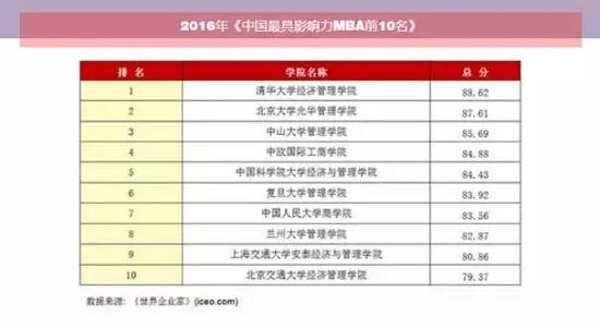 日前,《世界企業(yè)家》雜志公布2016年“世界最具影響力MBA100強”排行榜,共有10所中國高校商學院入選該榜,有3所來自香港,另外7所來自內(nèi)地,包括中歐國際工商學院、北京大學光華管理學院、清華大學經(jīng)管學院、北大國家發(fā)展研究院BiMBA商學院、上海交通大學安泰經(jīng)濟與管理學院、復旦大學管理學院、中山大學管理學院。