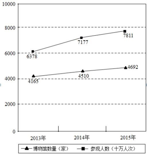 2013-2015年我國(guó)博物館數(shù)量和參觀人數(shù)