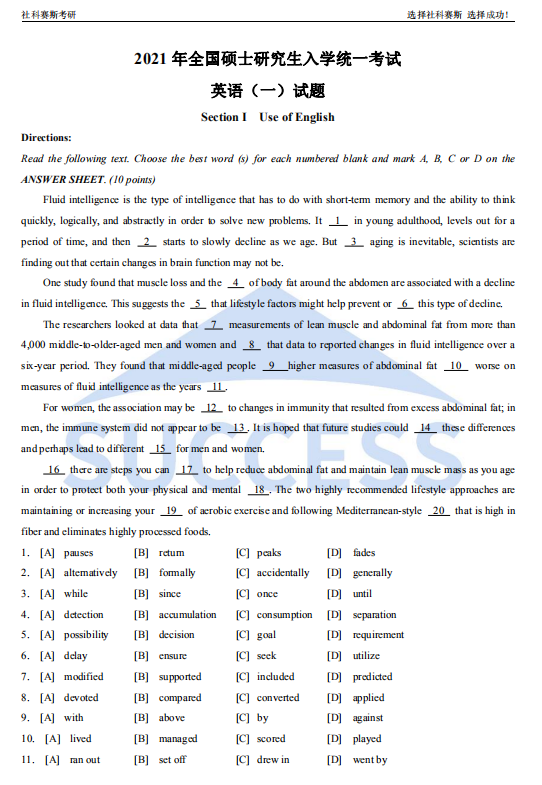 今天為大家整理了2021考研英語(一)真題答案及解析,看看你“對”了沒!