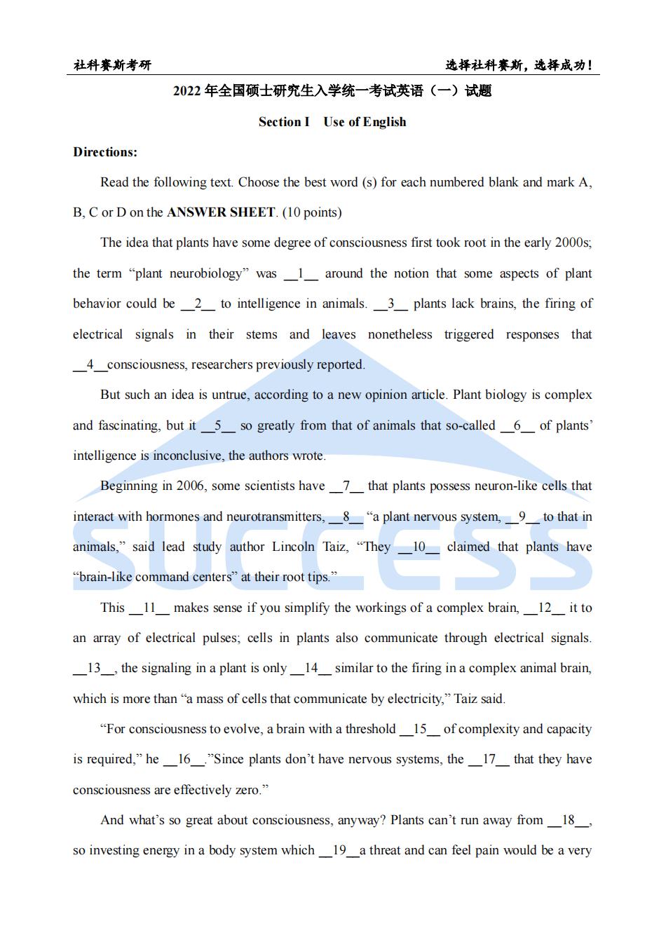 導讀:今天小編為大家?guī)怼?022考研:2022考研英語(一)真題與解析(社科賽斯獨家整理)附估分鏈接”的資訊,希望對大家有所幫助!