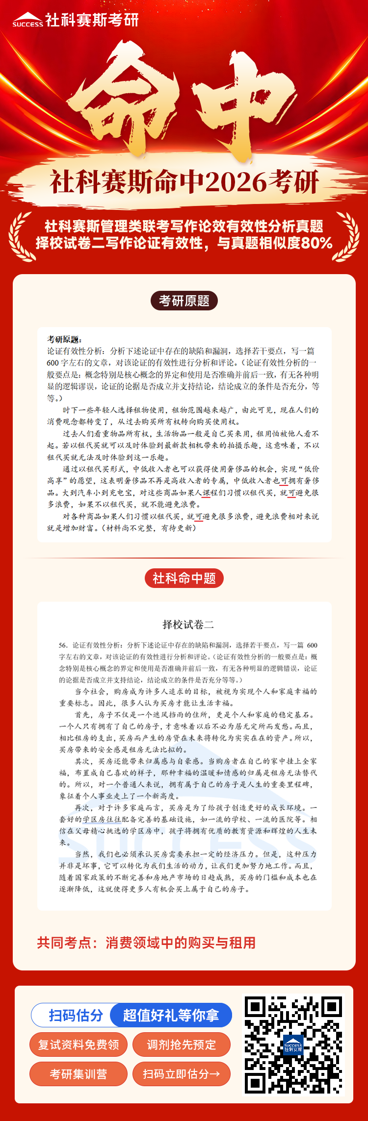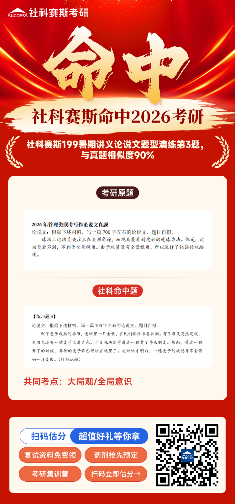 導(dǎo)讀:恭喜?社科賽斯押中2026MBA EMBA MEM MPA MPAcc管綜寫作論說(shuō)文真題論說(shuō)文。?社科賽斯 199 暑期寫作講義(MBA 系統(tǒng)寫作講義)有一道