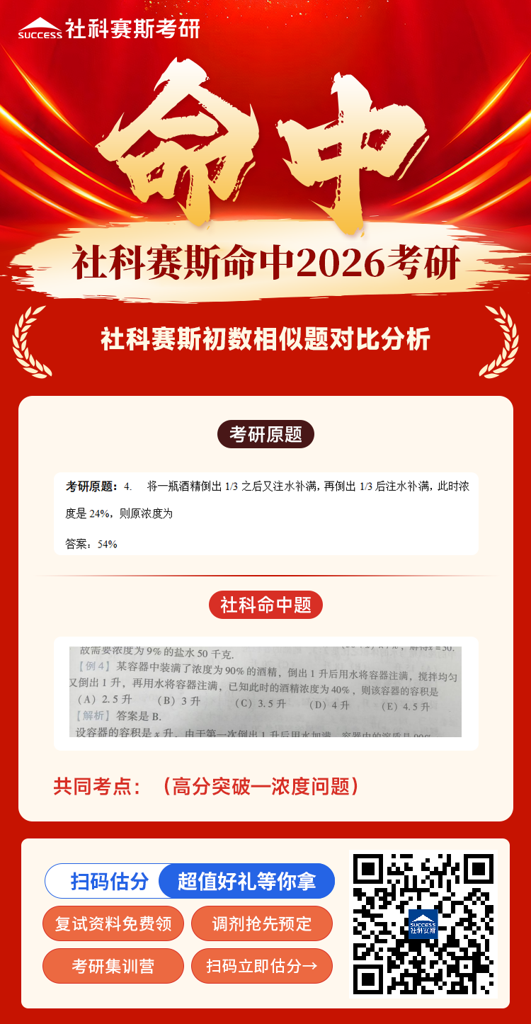恭喜社科賽斯押中2026MBA EMBA MEM MPA MPAcc管綜數(shù)學部分真題