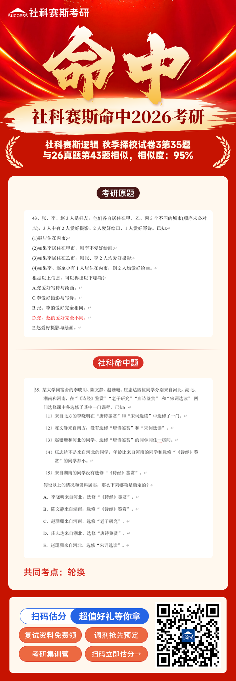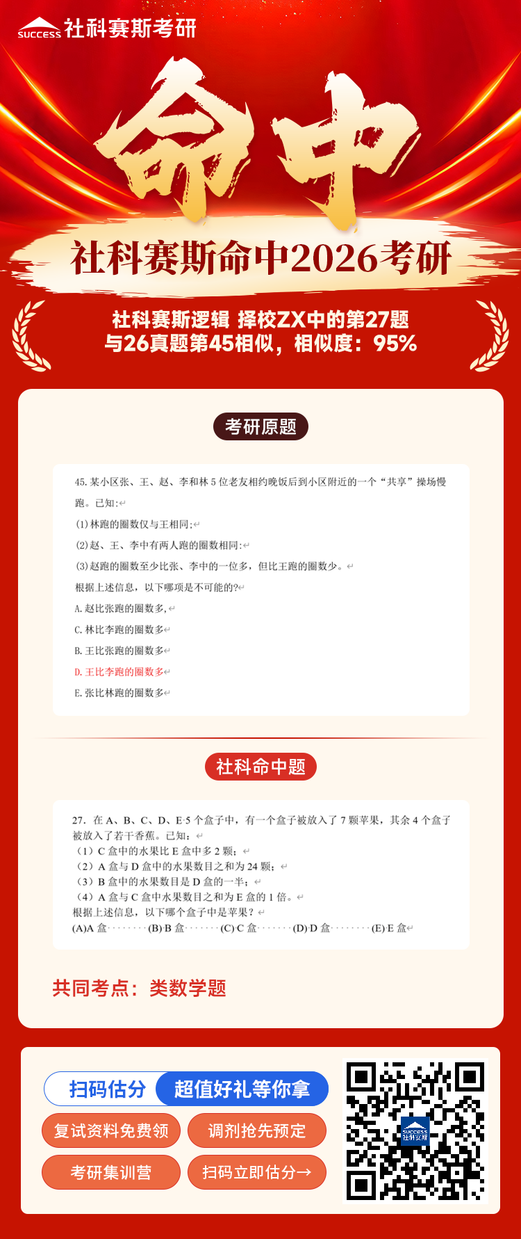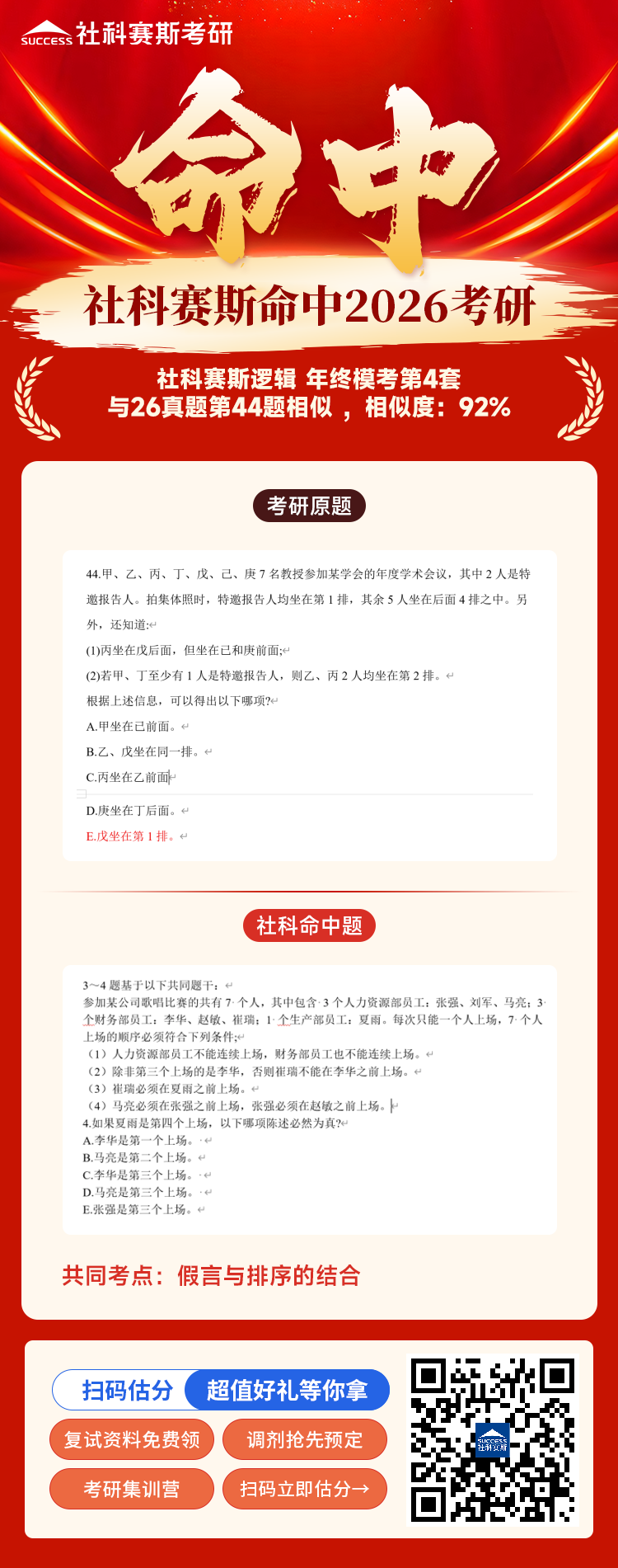 導讀:恭喜社科賽斯押中2026MBA EMBA MEM MPA MPAcc《管綜邏輯》部分真題