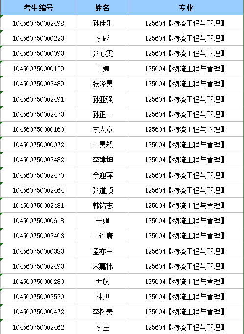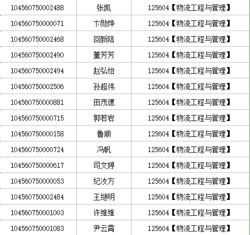 山東財(cái)經(jīng)大學(xué)MEM物流工程與管理(125604)研究生錄取名單: