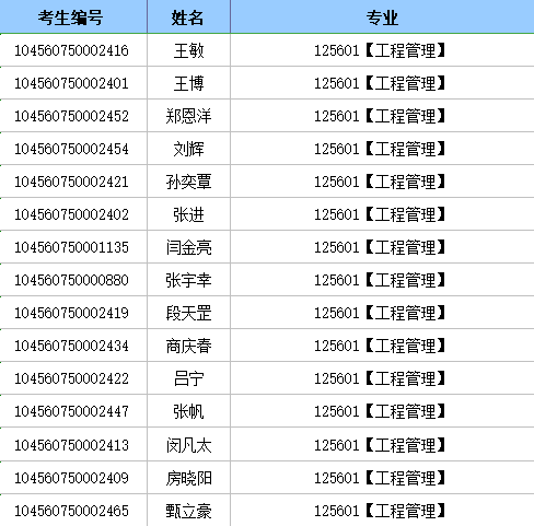 山東財(cái)經(jīng)大學(xué)MEM工程管理(125601)研究生擬錄取名單: