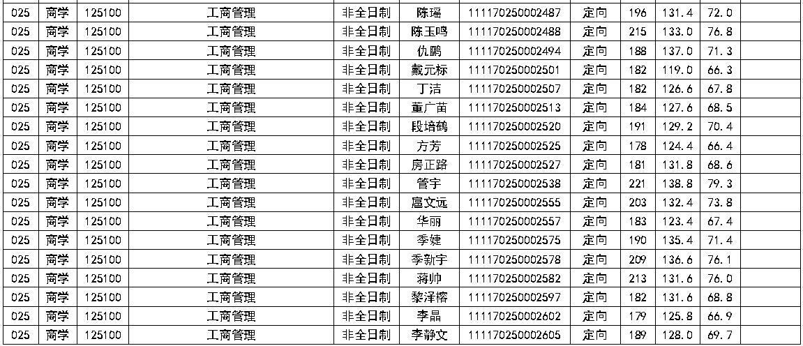 MBA-揚州大學(xué)工商管理專業(yè)擬錄取名單公示: