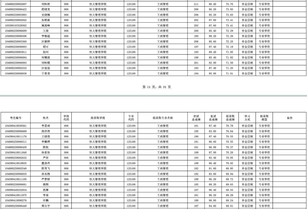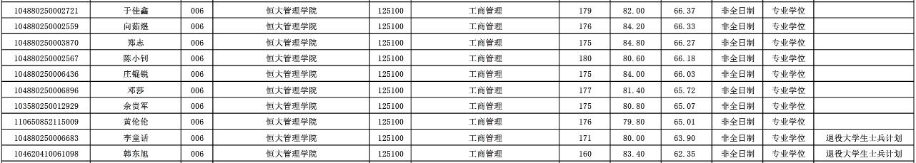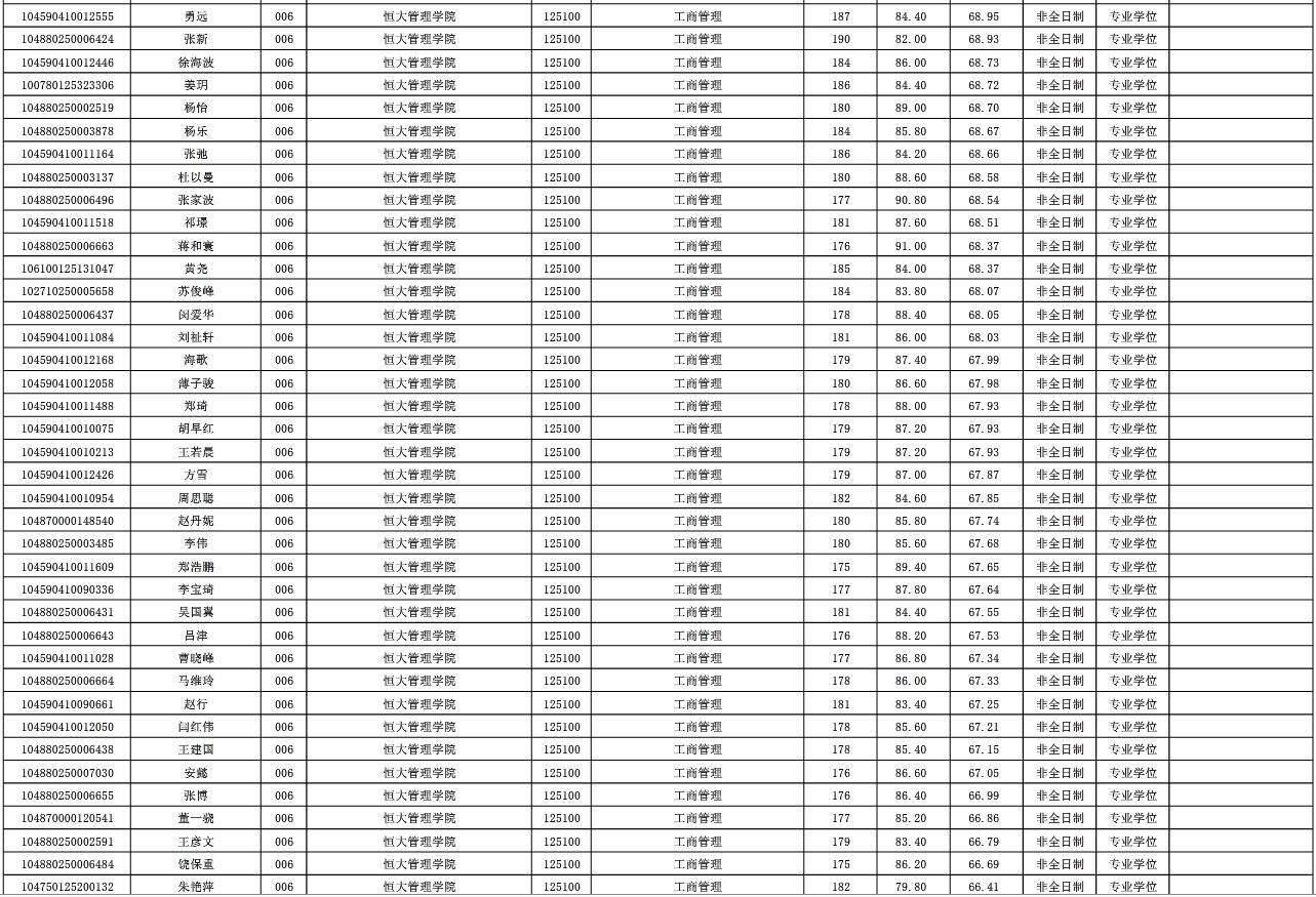 MBA-武漢科技大學工商管理專業(yè)擬錄取名單公示: