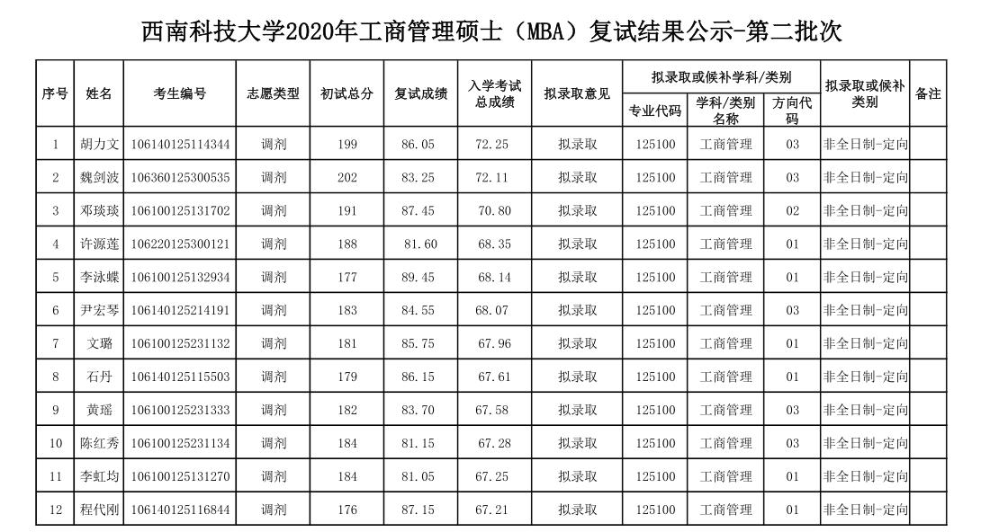 附件:MBA-西南科技大學工商管理專業(yè)第一批擬錄取名單公示