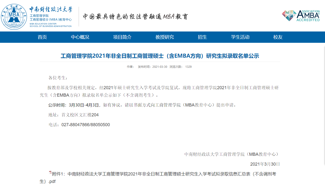 導讀:近日,已有院校公布2021研究生擬錄取名單。考研的同學們有沒有關注?今天小編就整理了“2021考研擬錄取名單:中南財經(jīng)政法大學工商管理學院2021年非全日制工商管理碩士(含EMBA方向)研究生擬錄取名單公示”的相關內(nèi)容,希望能對大家有所幫助。