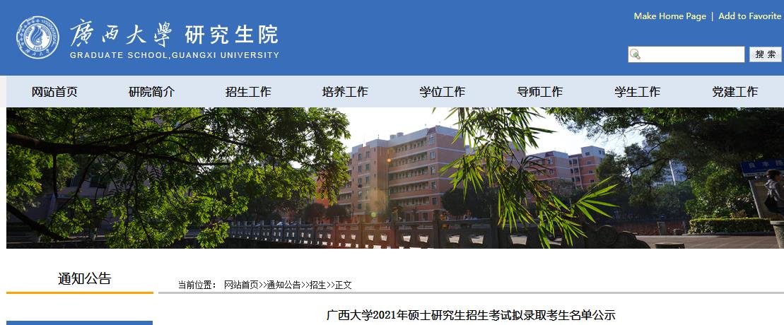 導(dǎo)讀:近日,已有院校公布2021研究生擬錄取名單。考研的同學(xué)們有沒有關(guān)注?今天小編就整理了“2021考研擬錄取名單:廣西大學(xué)2021年碩士研究生擬錄取名單公示”的相關(guān)內(nèi)容,希望能對大家有所幫助。
