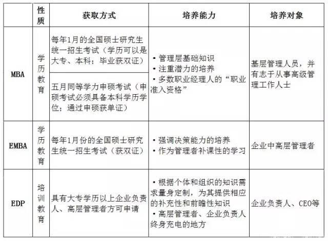 4 MBA、EMBA、EDP的區(qū)別