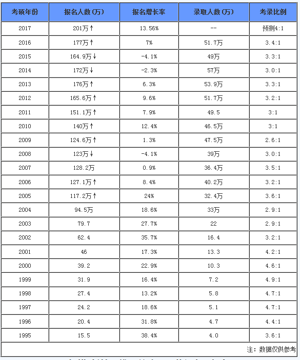 近23年考研整體報錄比統(tǒng)計表一覽(1995—2017)