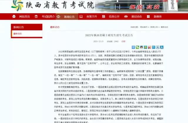 當(dāng)前,陜西新冠肺炎疫情正處在快速增長的階段,西安市疫情防控形勢嚴(yán)峻復(fù)雜,對研考造成巨大影響。教育部、省委和省政府高度重視本次研考組織工作,全力協(xié)調(diào)考場安排、試卷運(yùn)輸、考生參考、安全保障等,要求堅(jiān)持“應(yīng)考盡考”、公平公正、安全有序的工作原則,既要組織好研考工作,也要確保不因考試而引發(fā)疫情擴(kuò)散傳播。