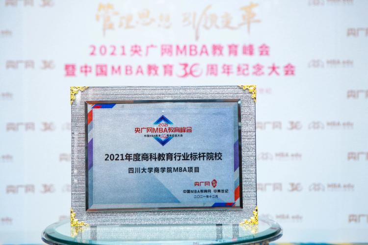 四川大學(xué)商學(xué)院MBA項目榮獲:“2021年度商科教育行業(yè)標(biāo)桿院校”