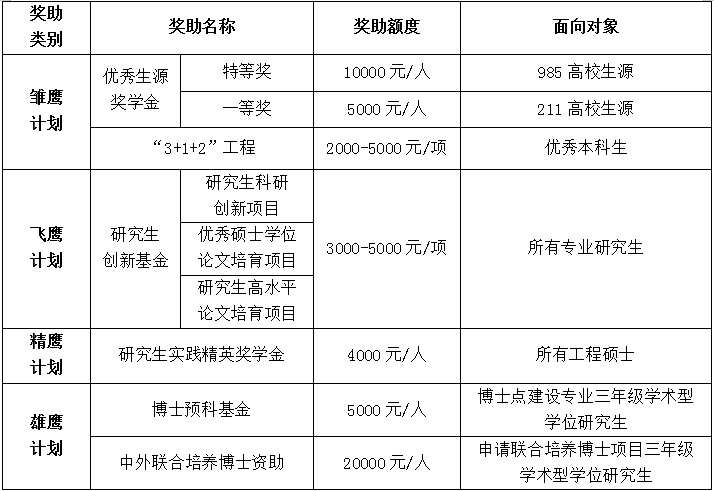 2.學校同時實施“四鷹計劃”,符合相關(guān)條件者均可申請相應獎助: