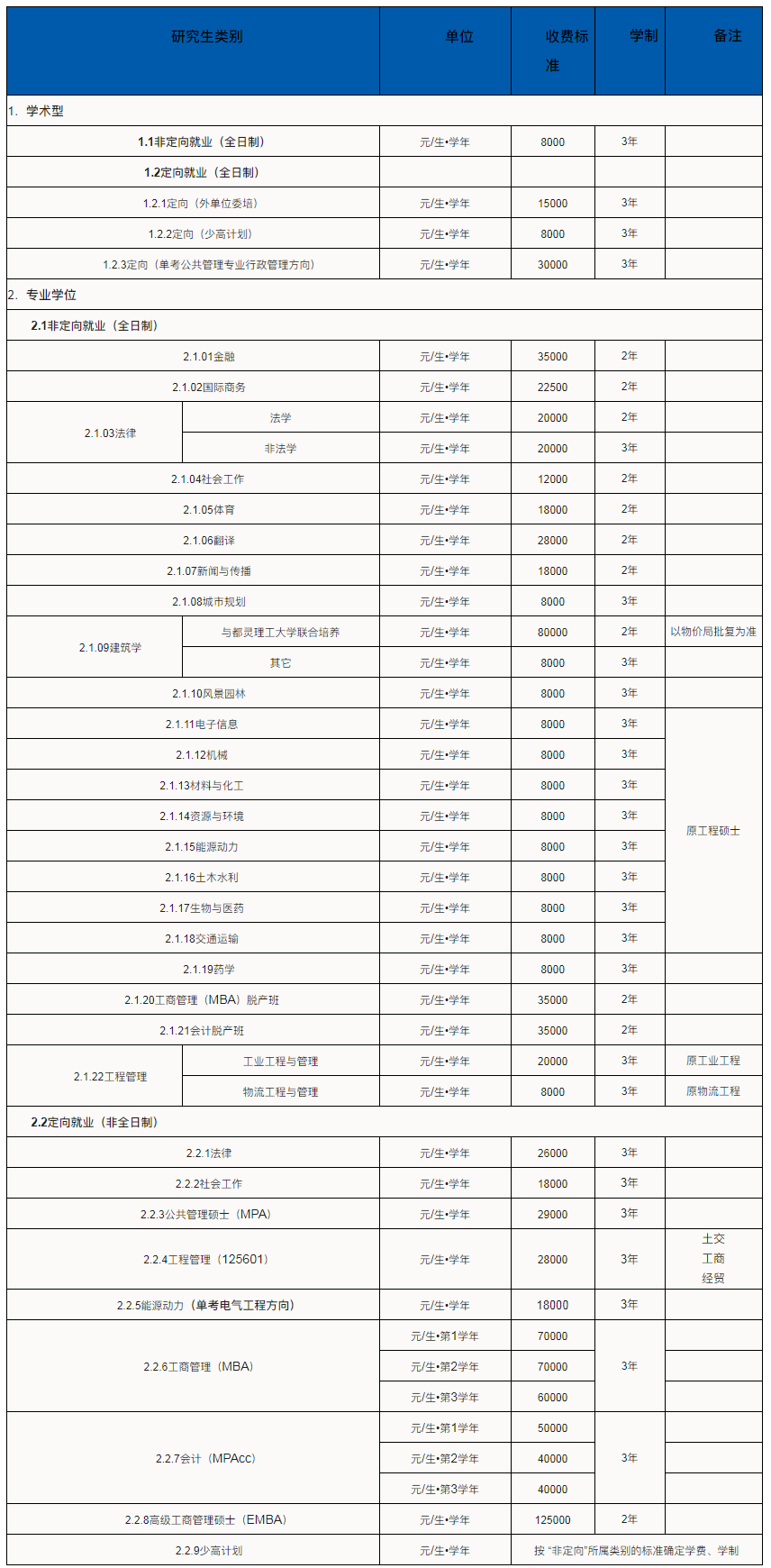 注2:上表學費標準如有變動,以學校最后公示為準。