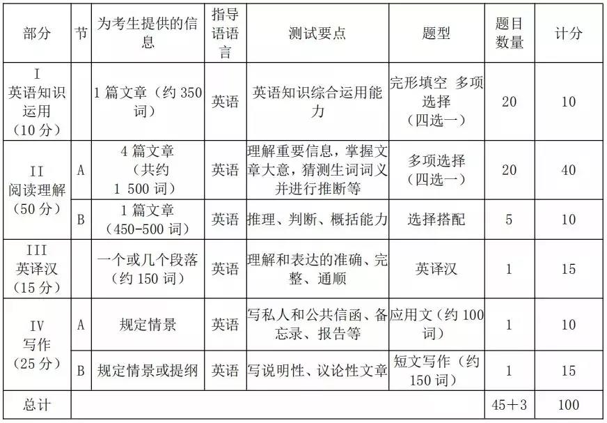 (2)英語二題型及分值