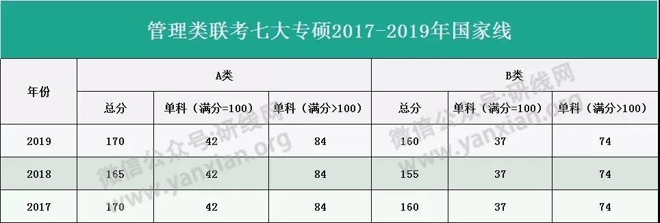 MEM屬于管理類聯(lián)考七大專碩之一,以下為2017-2019年國家線(進(jìn)入復(fù)試的最基本要求):