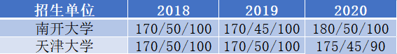 與國(guó)家線相比,南開(kāi)大學(xué)和天津大學(xué)持平或略高于國(guó)家線,并且,這幾年分?jǐn)?shù)線沒(méi)有太大的改變。