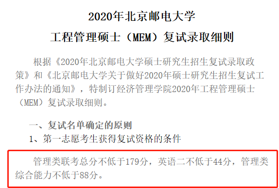 北京郵電大學(xué)2020年MEM(工程管理)復(fù)試基本分?jǐn)?shù)線:179/88/44