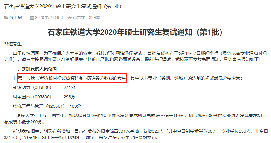 石家莊鐵道大學(xué)2020年MEM(工程管理)復(fù)試基本分?jǐn)?shù)線:175/88/44