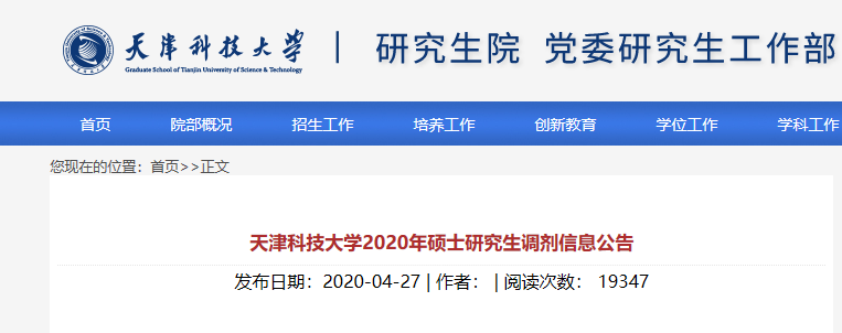 原標(biāo)題:天津科技大學(xué)2020年碩士研究生調(diào)劑信息公告