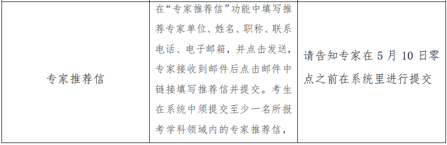 6 專家推薦信 登錄網(wǎng)址http://ga.sjtu.edu.cn/ksxt,在“專家推薦信”功能中填寫推薦專家相關(guān)信息并點(diǎn)擊發(fā)送,專家收到郵件后點(diǎn)擊郵件中鏈接填寫推薦信并提交??忌毺峤恢辽僖幻鶊?bào)考學(xué)科領(lǐng)域內(nèi)的專家推薦信。