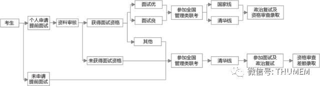 根據(jù)申請流程,面試分為提前面試(提前批)和通過全國聯(lián)考并達到清華線后的面試(報考批)。提前批面試報名及申請材料通過官方面試報名網(wǎng)址:www.tsinghua-mem.cn申請;報考批面試設置在全國聯(lián)考后,無需單獨申請。
